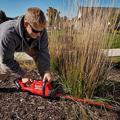 The M18 FUEL™ Hedge Trimmer has the power to cut ¾” branches, cuts up to 30% faster, and provides up to 2 hours of run-time per charge. Designed to meet landscape maintenance professional needs, the handle placement and weight distribution provide the best combination of balance and control. The trimmer features a slider-crank mechanism and all-metal gear case providing unmatched durability and longer life. The 24” blade trims more material in a single pass, increasing reach and productivity. The blade tip guard prevents damage to the property and the blades. The M18 FUEL™ Hedge Trimmer is fully compatible with 200+ solutions on the M18™ system.